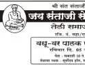 भंडारा येथे राज्य स्तरीय तेली समाज उपवर वर-वधु परिचय मेळावा मागील २३ वर्षापासुन सतत सुरू असलेला भंडारा येथे तेली समाजातील एकमेव राज्यस्तरीय 'उपवर वर-वधु परिचय मेळावा' यंदाही दि. २५ डिसेंबर २०१९ रोज बुधवारला सकाळी १० वाजेपासून श्री. संतानी मंगल कार्यालय, भंडारा येथे श्री. संताजी बहु. सेवा मंडळ, भंडारा या रजिस्टर्ड संस्थेद्वारे आयोजित केलेला आहे.